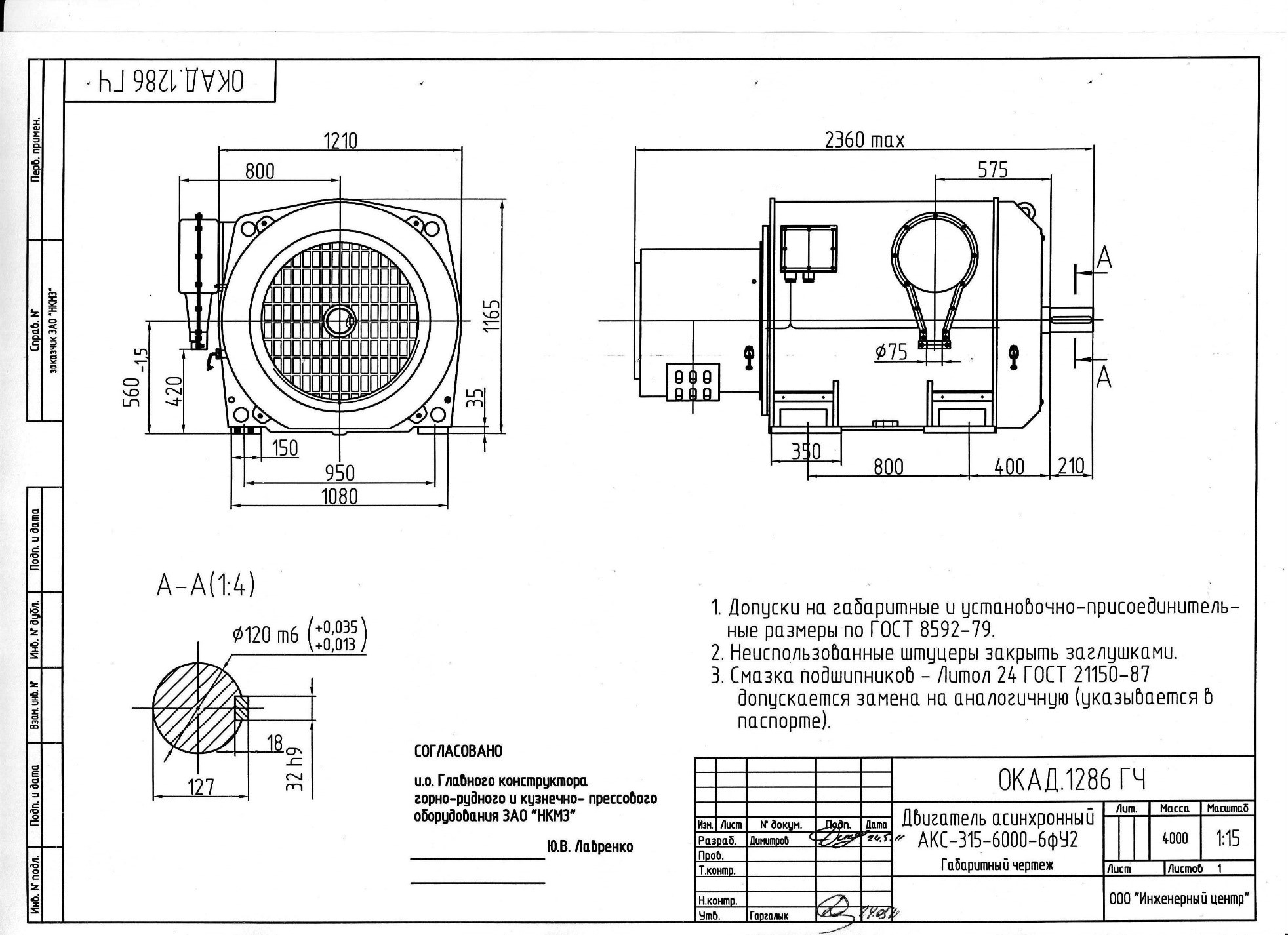 | АКС-315-6000-6ФУ2 | 315 | 6000 | 10000 | 93,5 | 0,88 | 2,3 | 4000 |