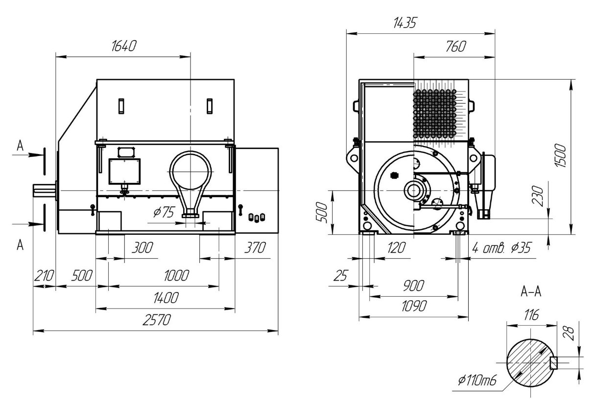 Установочные, присоединительные и габаритные размеры двигателя указаны на рисунке.
