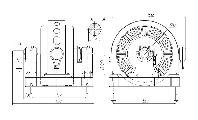 | Тип двигателя СДН/СДНЗ, СДС/СДСЗ | d1 | l1 | l14 | l30 | l31 | R30 | b14 | b30 |