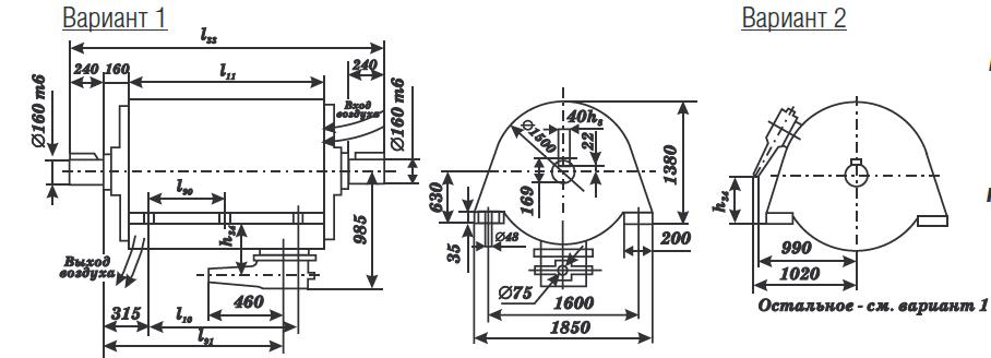 Конструктивное исполнение двигателей по способу монтажа IM1102, способ охлаждения ICA21. Степень защиты двигателей IP21, коробки выводов – IP44.